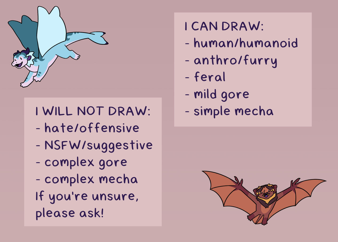 I can’t guarantee a set time your commission will be finished (busy schedules suck). Ranges from a week to a few months (I am so sorry)
