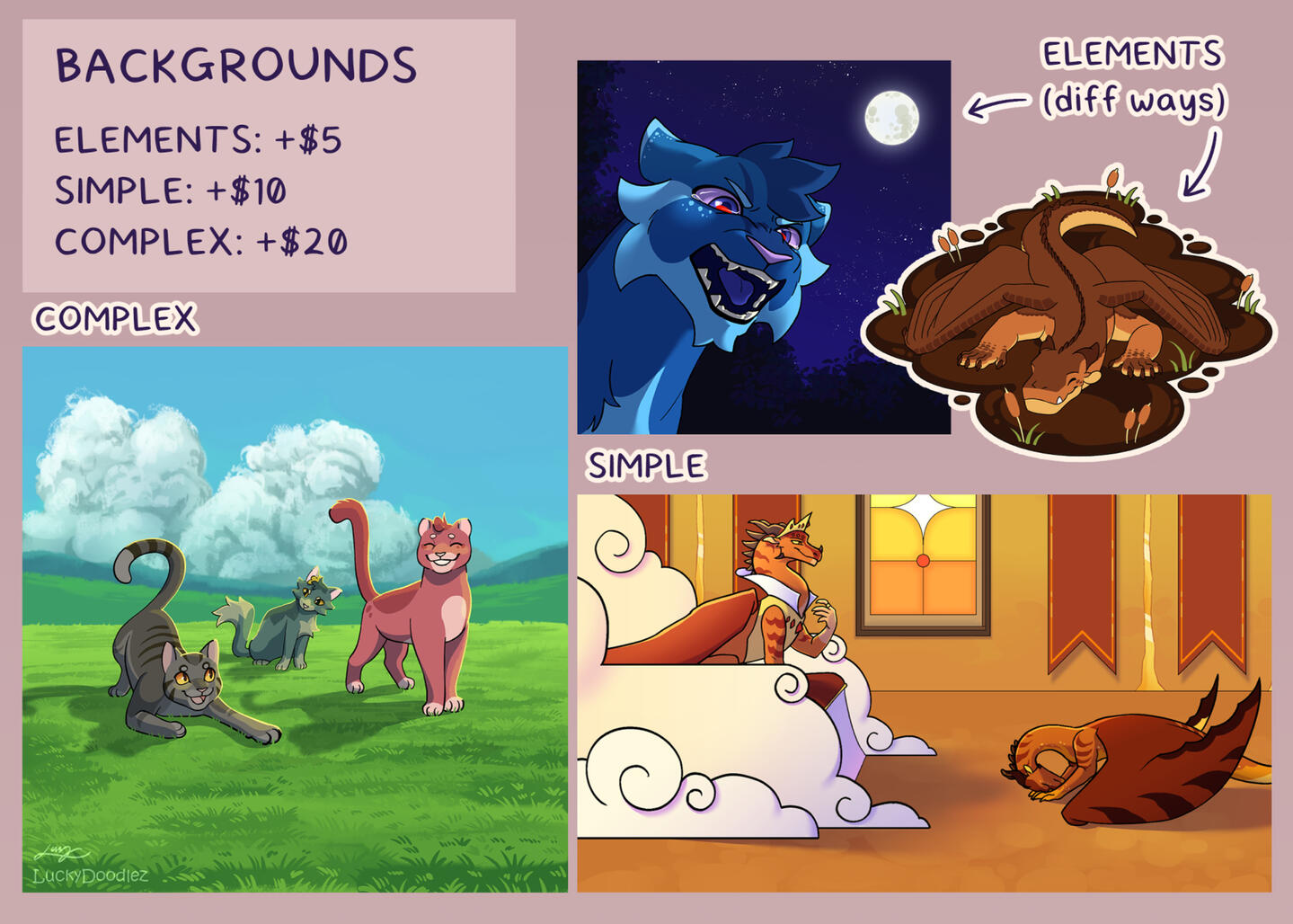 Hi! This is currently a WIP, but feel free to browse what's here!All prices are in $USD. See the Payments section for more infoIf a price has a + sign, that means that is the base price, and the complexity of the commission may raise this price!